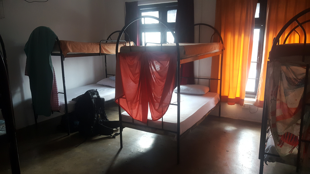 My dorm room at the City Hostel in Kandy, Sri Lanka. Come in low season and you get the whole place for yourself. The windows had to stay closed or monkeys would walk in.